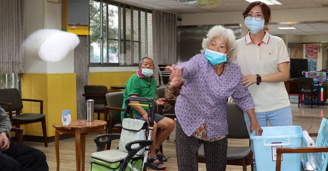 日間照顧中心─社區中銀髮長輩的第二個家。走進中寮鄉香柏園老人日間照顧中心,金黃雞蛋花下的菜圃青葱鬱鬱、大廳宛如咖啡座的優閒恬適,廚房地板鍋具晶亮整潔,25位老人家在二樓由9位服務人員陪伴,完善的休息室、文康休閒空間、體適能教室,提供豐富多元的動靜態活動,搭配營養符合阿公阿嬤牙口的午膳、貼心服藥提醒及個別護理,行動不便的張阿嬤看著照片中自己以襪球擲準九宮格的英姿,開心的笑著說,來這裡真趣味啦,有伴擱免煩惱身軀病痛沒人知!