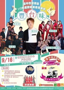 臺中市豐原區公所將於112年9月16日下午6時起,在臺中市葫蘆墩文化中心戶外廣場舉辦「豐台味」音樂會,揉合台式搖滾、宮廟電音、傳統國樂等多種台灣音樂文化經典元素,還有重量級金曲台語歌王帶來經典台語歌曲,一同打造台味十足的熱鬧音樂晚會。同時入場時發放限量的「發光兔耳朵造型髮箍」,一起提前慶祝中秋節,歡迎大家踴躍參加,逗陣來感受充滿台客風的音樂饗宴。