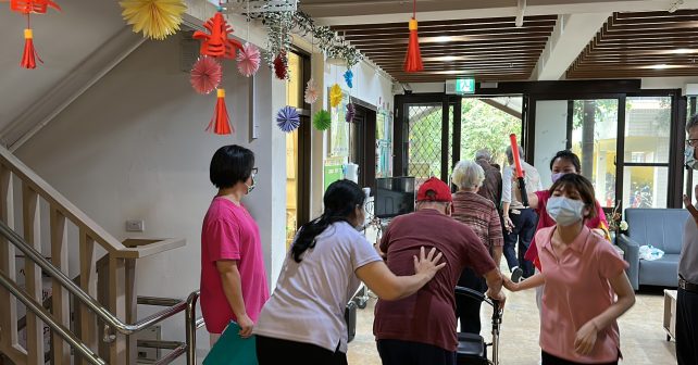 為強化工作人員複合型災害緊急應變能力,保障入住榮家長輩安全,桃園榮家特於本週進行消防編組演練,模擬在遭遇強震時,房舍因電線走火發生火警,值班人員滅火、疏散住民逃生緊急應變作為。