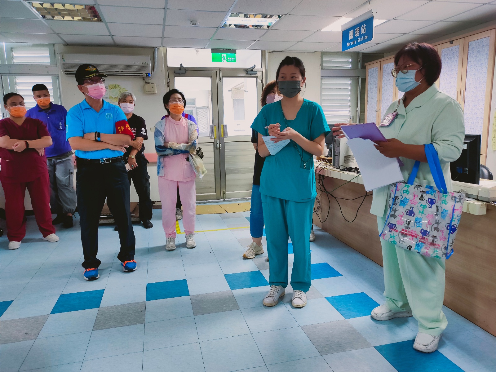 馬蘭榮家於(8)日下午進行模擬演練,內容包括:個人防護裝備穿脫、確診者移送病院及環境清潔及消毒等技術。當天由防疫長郭副主任帶領工作人員執行各項感染管制的防疫措施,並邀請台北榮民總醫院台東分院孫感管師指導,實地演練過程中對於馬蘭榮家照服員均能正確與熟練穿脫隔離衣表示肯定,並強調平日做好整備才得以從容應對突發狀況。