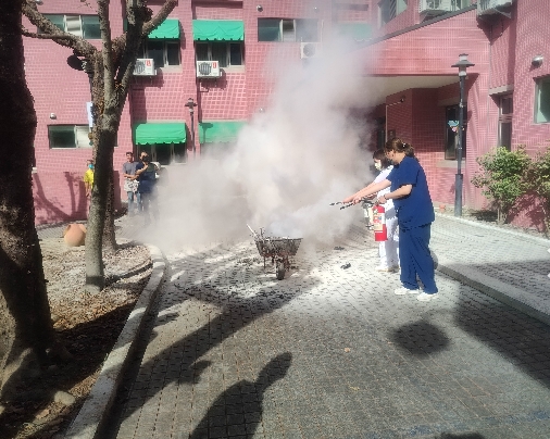 演練活動分為三個主要課程。首先,隨機抽取各組室職員進行消防栓佈水線滅火的實地練習,確保每位職員都能熟練操作消防設備,迅速應對突發火情。接著,由力行堂負責安養堂的消防演練。這一部分的演練模擬了火災發生時的應急處理流程,讓參與者熟悉逃生路線及滅火器材的使用方法。