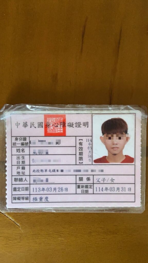 草屯二十七歲簡姓少年因車禍自撞,造成全身重度癱瘓,肌肉漸漸萎縮,需長期復健、拍痰、按摩、拉伸及跑醫院,稍不注意身體還有褥瘡的可能,生活上完全無法自理,該簡姓夫妻雖然還需奉養、照顧八十多歲的老母親及一位年僅八歲的小兒子,但還是不願放棄癱瘓在床的簡姓少年。