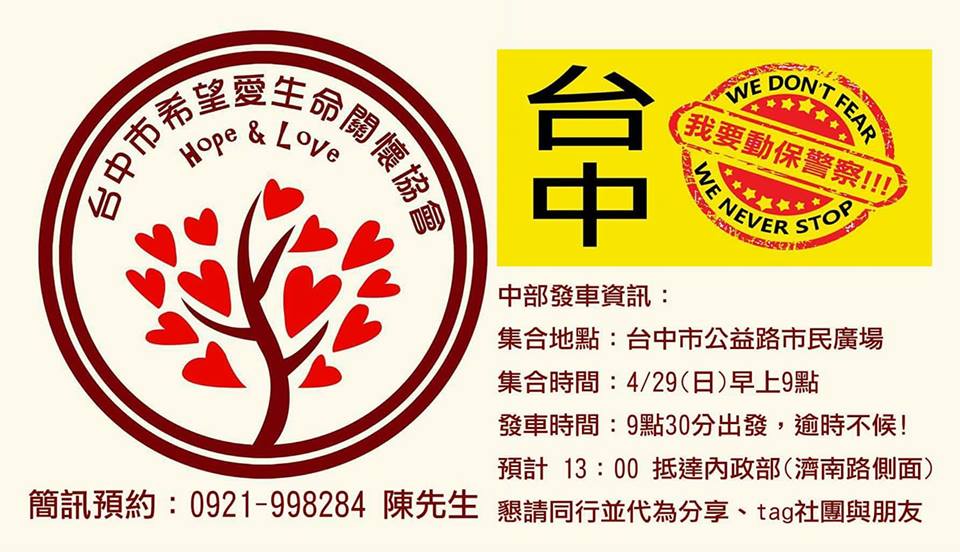 地方新聞臺中市 希望愛生命關懷協會號召中部鄉親北上參加動物解放運動 榕嫻8 年 ago01 mins 【記者詹宗霖台中報導】 台中市希望愛生命關懷協會號召中部鄉親,北上聲援設置專責【動保警察】公益活動,希望能扼止… Read More