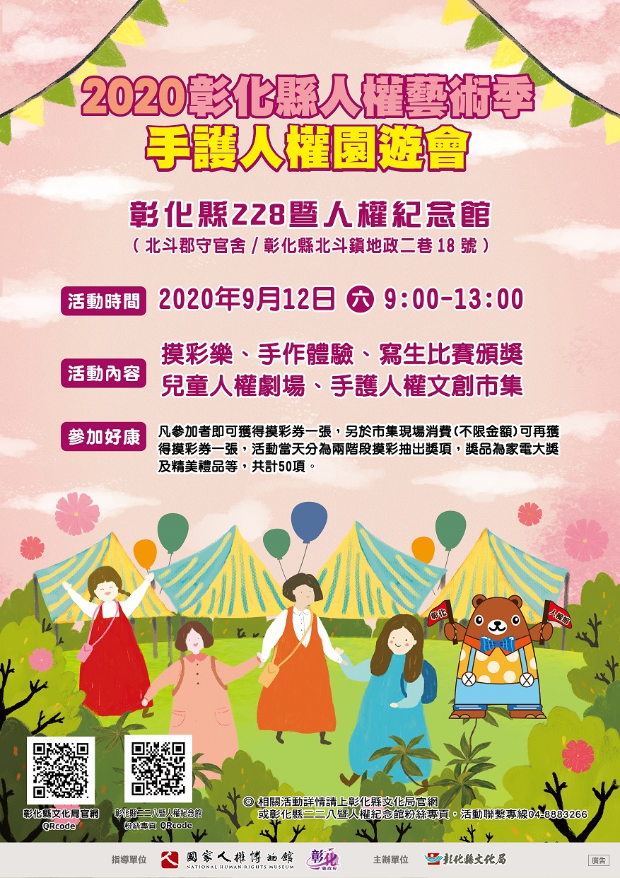彰化縣 2020彰化縣人權藝術季—手護人權園遊會 9/12登場 榕嫻5 年 ago5 年 ago01 mins 【環衛新聞記者江慧嬌報導】 彰化縣文化局為提升民眾對於多元人權發展的認知,辦理兒童人權系列活動!… Read More