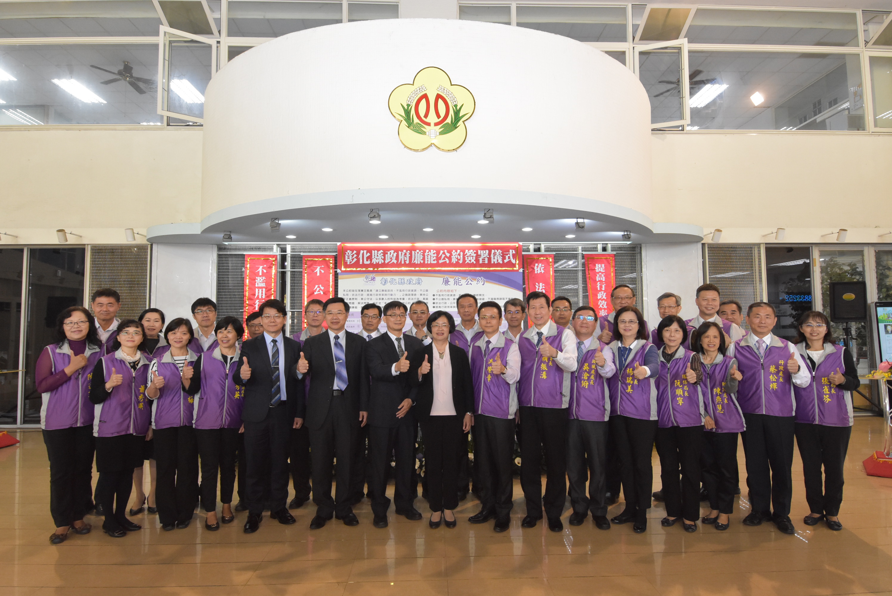 地方新聞彰化縣 「彰顯廉能 美好彰化」縣長帶領縣府團隊簽署「廉能公約」 榕嫻7 年 ago01 mins 【記者陳祐堂報導】 彰化縣長王惠美於4日上午率領副縣長洪榮章、秘書長賴振溝及各局處一級主管在縣府中庭簽署「廉能… Read More