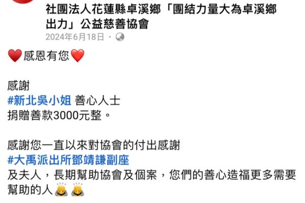 花蓮縣 5年來新北退警託警行善 大禹警默默傳達溫馨善行 榕嫻1 年 ago01 mins 【環衛新聞記者陳晴澐報導】 花蓮縣警察局玉里分局大禹派出所副所長鄧靖謙5年來每年3次皆會收到… Read More