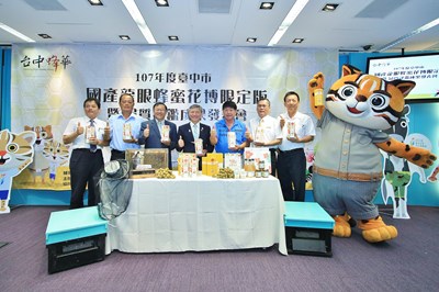 花博倒數93天,市府為迎接花博,特別以獲獎蜂蜜「台中蜂華」作為花博限定版蜂蜜,包裝上加入花博LOGO及吉祥物石虎家族弟弟「來虎」圖樣,造型吸睛,將於花博期間販售,讓更多民眾體驗台中蜂蜜的高品質。