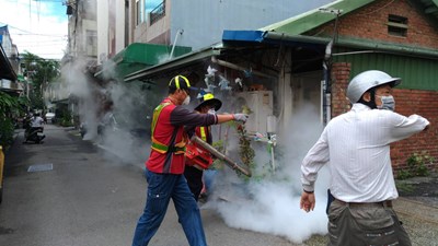 台中市對抗登革熱防疫工作持續進行中,包括基層里長、衛生所人員都全力奔走,宣導防疫的重要性以及正確觀念,並協助噴藥、孳清;而環保局清潔隊員更是一區接著一區噴藥消毒,希望儘速斷絕登革熱病媒傳染源。