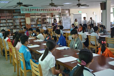 台中市107年度國中學生英文作文比賽今日於梧棲國中舉行,共有80多位學生參賽,今年題目以四格漫畫方式呈現,將花博導覽、交通接駁等生活化主題融入其中。