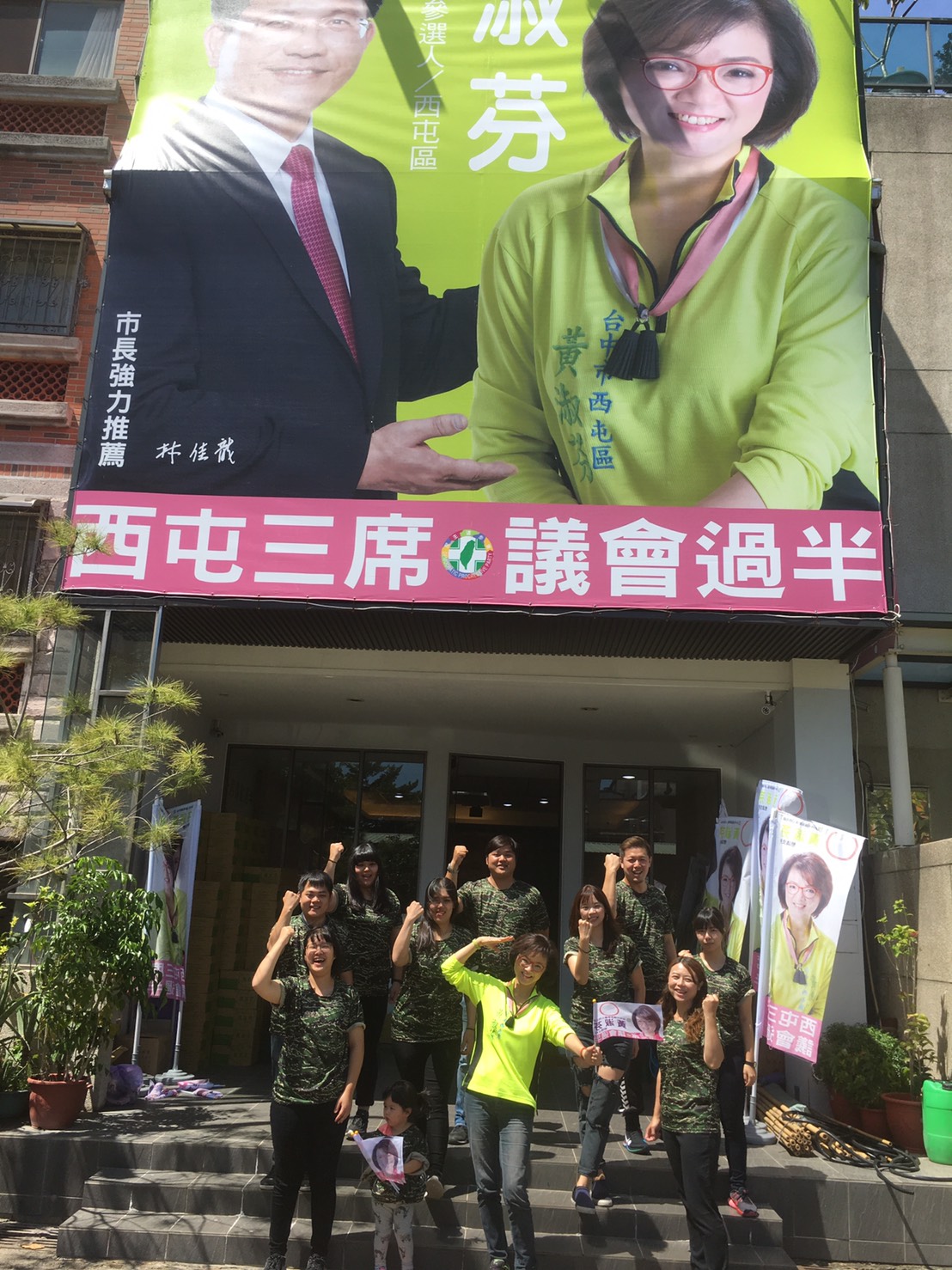 議員候選人黃淑芬選舉的迷彩助選兵團,期待在西屯區的街頭、公園、市場及各個活動場所,與鄉親長輩見面拜託,為黃淑芬拉票!