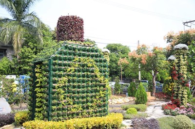 教育局指出,企業從各自經營理念出發,延伸設計別緻的庭園景觀,主題多元、豐富,如運用全球專利的「光粒子」融入設計,打造以陽光見證愛情的幸福庭園,也有以家喻戶曉的「綠油精」做為造型,表達台中花博「綠色、自然、人文」的理念,並設置互動裝置,讓民眾與藝術設計進行互動。