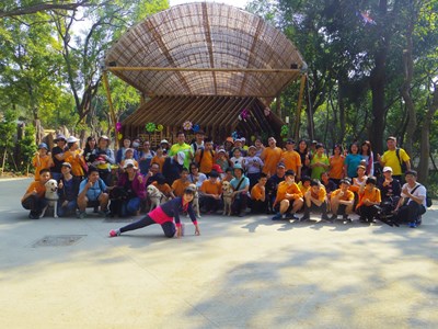 台中市政府教育局與台中市立啟明學校舉辦「與導盲犬一起旅行,聆聽花開的聲音」活動,今日在7隻訓練有素導盲犬的陪伴下帶領30位啟明學校視障部國中小特殊教育學童參訪花博后里森林園區。