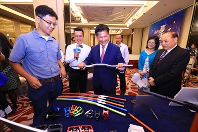 林市長今日在市府勞工局長黃荷婷、台中市工策會總幹事蔡世寅的陪同下,出席論壇活動,台中市青年創業協會理事長潘瑞華等人也共襄盛舉。林市長巡逛現場青創展示攤位,聆聽青年分享創業理念,交流合影,氣氛熱絡。