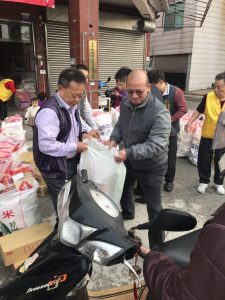 張議長自己身體力行之外,今天早上同一時段也派出18位「清年軍」,到沙鹿區協助「台中市港龍慈善協會」的寒冬送暖活動,協助搬貨發送物資給清水、梧棲、沙鹿、龍井、大肚區近二百戶低收入戶及邊緣戶,協會另外也發送每戶一千元現金。