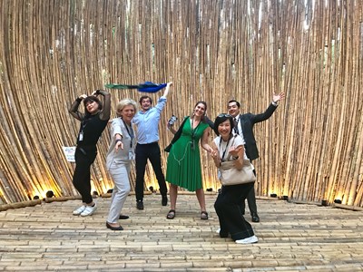 中市新聞局表示:Hermes台灣區總經理程家鳳和Hermes Petit h部門總經理Caroline de Raidman、藝術總監Godefroy de Virieu及溝通總監Laurence Dejust等人,昨日前往花博后里森林園區參觀發現館、四口之家、天上掉下一顆種子、友達微美館及聆聽花開的聲音等,開心地在不同展區自拍合照,直說台中花博真的令人印象深刻。程家鳳表示:台中花博與傳統想像的花卉博覽會不太一樣,看到的不是各種花卉的組合,而是由不同的展區,用台灣現在最棒、最引以為傲、科技甚至結合藝術的方式,呈現花博 GNP-Green、Nature、People的核心理念,這是現在全世界關注的議題,告訴大家植物和土地的重要,透過循環利用創造無限想像空間,把傳統老技法運用在現代生活,她覺得這是一個很美的傳遞方式。台灣的精密科技真的值得驕傲;友達微美館則展現台灣傑出的面板科技,透過面板展現花粉受粉的過程,讓原本枯燥的生物樣貌變成一件有趣的事,相信對於小朋友來說,會是更新、更淺顯易懂的方式來發現植物的秘密。