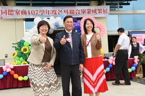 草屯同德家商16日舉辦畢業展,並捐6千張發票給創世基金會,活動熱鬧。林明溱縣長到場致詞,鼓勵學生發展一技之長。他說,很多企業老板都是技職出身,學生加強進修,終身受用,有助於日後發展。