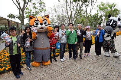 台中花博入園人次突破600萬!2018台中世界花卉博覽會自開園來,吸引各地民眾前來一睹風采,搭配新市府團隊的新政策,第600萬名入園遊客,今日下午在外埔園區出現,來自新北市鶯歌區的郭先生,趁著假日帶太太來台中遊玩,第一次逛花博就幸運成為第600萬名遊客,值班園長陳淵河代表園方贈送吉祥物虎爸造型玩偶,虎爸及歐米馬也驚喜現身,現場歡笑聲不斷。