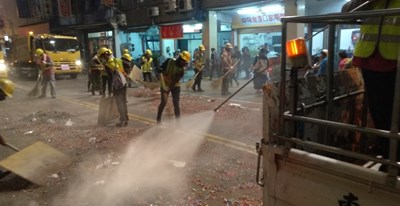 此外,當遶境隊伍經過後,環保志工與清潔隊員也將立即清掃鞭炮屑與垃圾,以最快速度還給民眾乾淨的環境。遶境起駕日至隔日上午8時前,共清除垃圾約16.3公噸及資源回收1.47公噸,成效良好。