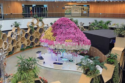 花博邁入倒數階段,后里馬場園區花舞館內蘭花廳,為展現台灣蘭花育種技術的成功,以2500株新鮮蘭花、20多種品種、10多種花色,超過萬朵的蝴蝶蘭鮮花,結合與遊客問答互動的AI技術,創作一棵繽紛色彩生命樹的「蘭花知識雲」,是最受歡迎的花博景點之一。台中市政府歡迎民眾把握機會,踴躍前往參觀。
