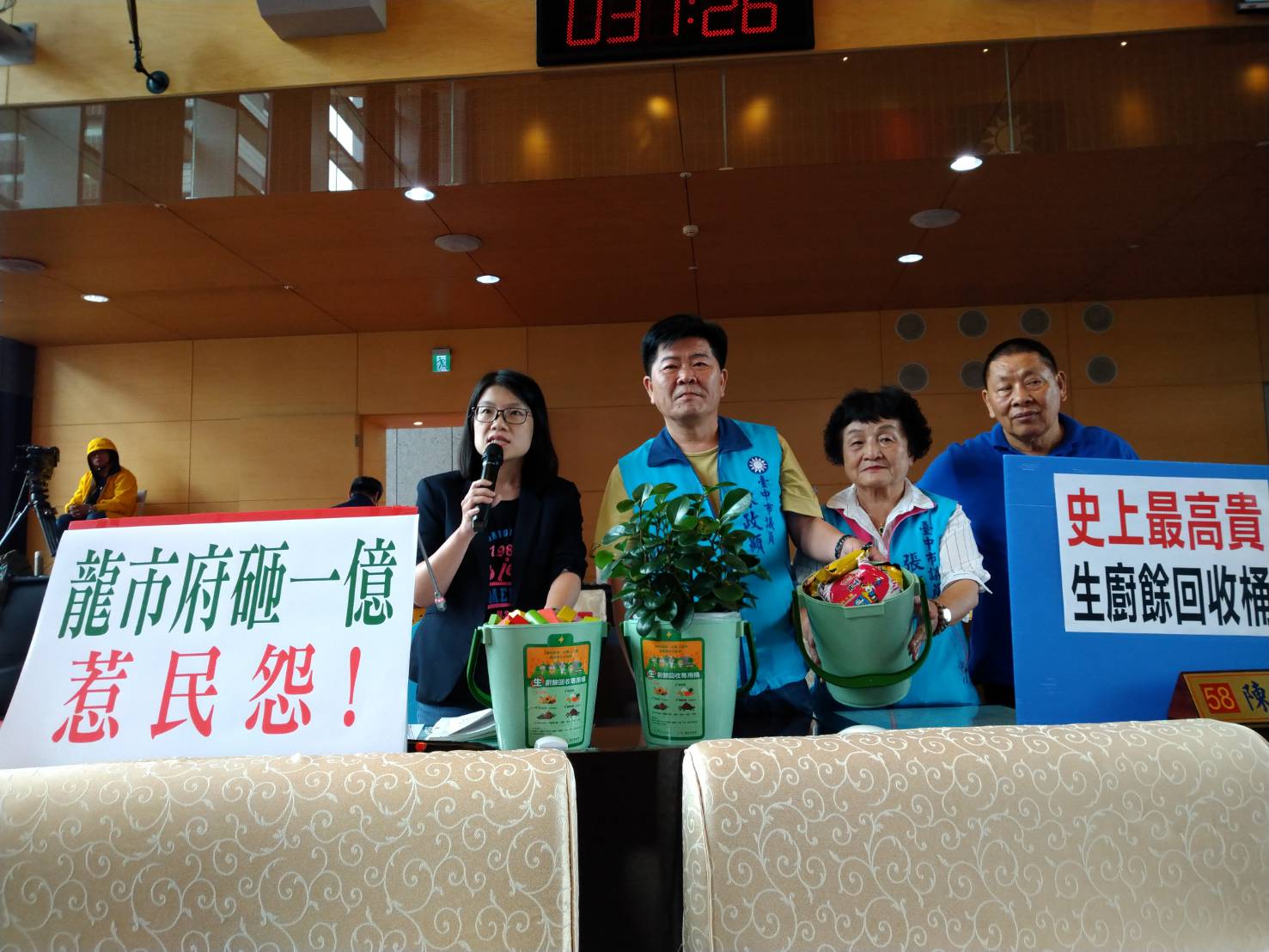 台中市議員張廖乃綸在市議會業務質詢中拿出從市面上五金行購買的塑膠桶和市府採購的生廚餘回收桶做比較,二者大小差不多,市售的塑膠桶材質和厚度都比較好,單價只要59元,但是市府採購的生廚餘回收桶,蓋子常常蓋不攏、材質比較薄,單價卻高達103元,簡直是史上最貴的生廚餘回收桶。