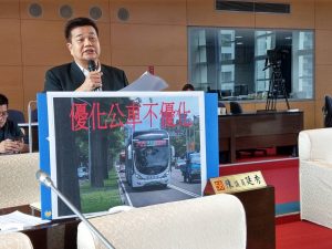 今日交通地政業務質詢時,陳議員質詢時表示,清水民眾反應,為位於台中市清水區忠孝路、忠孝一街、忠孝二街、忠孝西路及民和路住戶居民、約有1000餘戶住家;並向交通運輸處長陳文政質詢,是否知道這條路線的公車車次為何?陳處長回覆,此路段無公車班次! 陳議員說道, 此地1000餘戶居民最感交通不便的就是至鰲峰路的清水國中、建國國小離這甚遠,此地無設公車路線、站牌、光走路行程約40-45分。