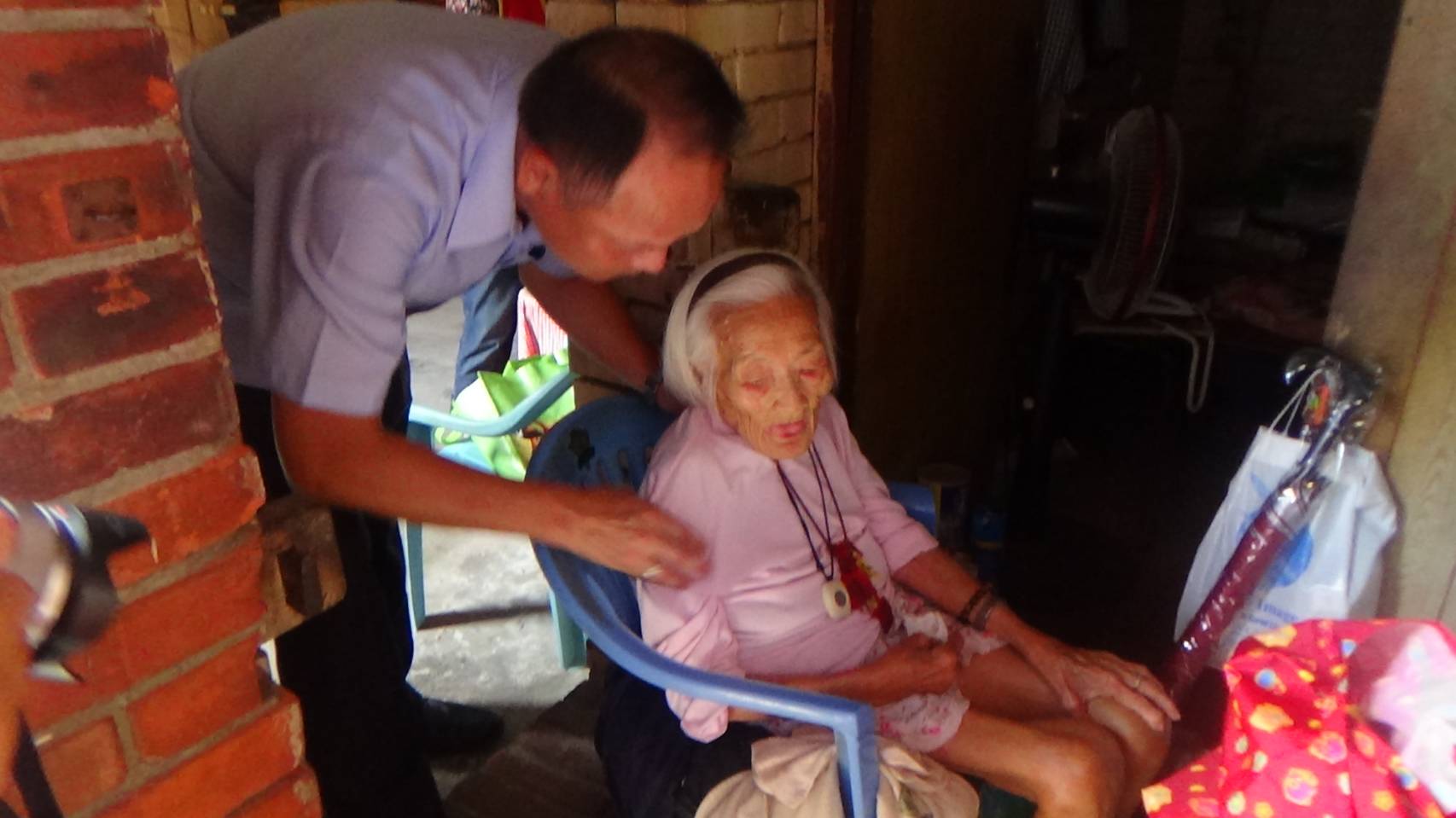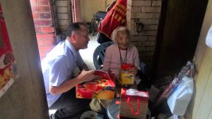 本次活動由中部分署邀集華山基金會發起,本分署扶大桂分署長親自率同仁關懷台中市清水區獨居老人,並致贈水果禮盒及素粽;其中最年長的老人家已高齡89歲,長年一個人居住,平日甚少談話對象,在本分署同仁抵達住處給予熱切關懷時,老人家們眼神中露出久違的光芒,雖然口齒已不大清楚,同仁們仍是親切的與其話家常,如同自己的長輩獻上熱情的擁抱,讓老人們感受親情般的溫暖,溫馨情意洋溢在滿是皺紋的臉上,讓在場同仁們也十分感動。