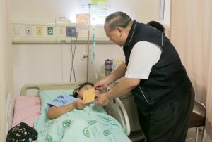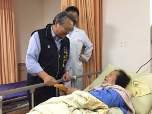 這次長青學苑國畫班中最年長的83歲長輩,因這次意外造成右腳蹠骨骨折,目前仍住院觀察中,看到令狐副市長到病房探視,雖然心有餘悸,還不忘關心其他學員的傷勢,同時也感謝市府的關心。