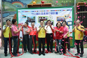 竹山鎮社區產業行銷計畫在南投縣政府補助及輔導下,今日在竹山鎮富州社區活動中心舉辦社區產業實體店面開幕活動,社會及勞動處王科長榮義、竹山鎮長陳東睦及共同合作的8個竹山鎮社區理事長也都參與揭牌儀式,希望透過大家的合作共好,能有效活絡社區產業,行銷地方特色產品,帶動社區發展。