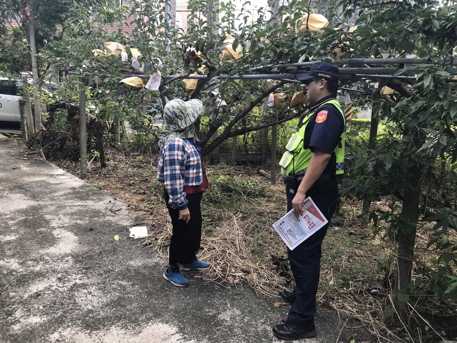 東勢分局茅埔派出所轄內高經濟作物高接梨種植面積廣大且開始進入產季,農民除了靠天吃飯,每到收成期間還得憂心農作物失竊,警方為了守護農民辛勞耕作成果,針對轄區特性,啟動護農專案,規劃執行農產品防竊巡邏,全力協助農民守護農作。