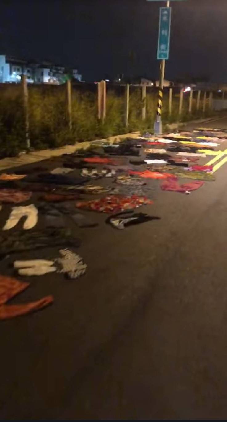 當地居民懷疑,這可能是街友所為,但如果是舊衣回收業者處理衣物,拿馬路來曬衣,就太不可取,而且有發生車禍意外的風險。