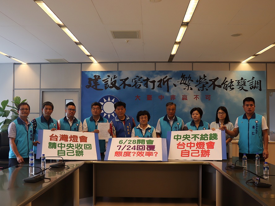 台中市將以5億元主辦2020台灣燈會,市府向中央要1億元補助款,卻傳出中央只給一千多萬元。台中市議會國民黨團議員今日召開記者會抨擊身為台中市民的交通部長林佳龍故意「卡」台中,議員們嗆聲中央不給錢,台中拒辦「台灣燈會」,改辦「台中燈會」。