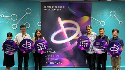 市府觀旅局今日於台灣大道市政大樓,舉行2020台灣燈會台中市識別系統(CI)發布記者會,在觀旅局長林筱淇、民政局專門委員吳東燿、薩巴卡瑪國際有限公司設計總監Anthony J. Soames等人見證下,揭曉了明年台灣燈會意象Logo標誌。