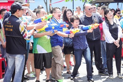 太平潑水節儼然成為中市別具特色的父親節活動。今日活動包括盧市長、民政局長吳世瑋、太平區長許貴芳均到場參加,立法委員何欣純、市議員李麗華、羅廷瑋、賴義鍠也派代表同樂,另台中廣播電台總經理莊子富、多位在地里長也互相潑水祝福。