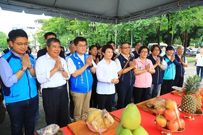 東、南區公園改善工程今日舉行聯合開工儀式,盧市長率領市府局處首長祈福,並聽取工程簡報。包括建設局長陳大田、南區區長洪峰明、東區區長陳佩玉,以及議員李中、邱素貞、何敏誠、羅廷瑋與東、南區多位里長皆到場關心。