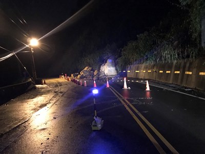台中市太平區長龍路四段25巷旁昨晚10時左右,因豪雨導致邊坡大量土石崩落,造成道路雙向阻斷無法通行,台中市養護工程處獲報後立即派員前往現場施工修復,迅速於當晚11時30分左右搶通道路,目前維持車輛單側通行。