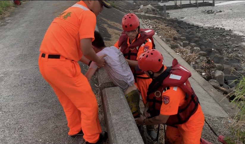 經第三岸巡隊同仁抵達現場後發現該名男子已於大肚溪水中載浮載沉,海巡同仁旋即狂奔下水救援並成功將該男子救起,經初步檢查該名男子僅些微嗆水無外傷且意識清楚,身上帶有酒味且情緒較不穩定,事後經同仁安撫該男子情緒後移由消防局龍井分隊協助將該名男子送醫。