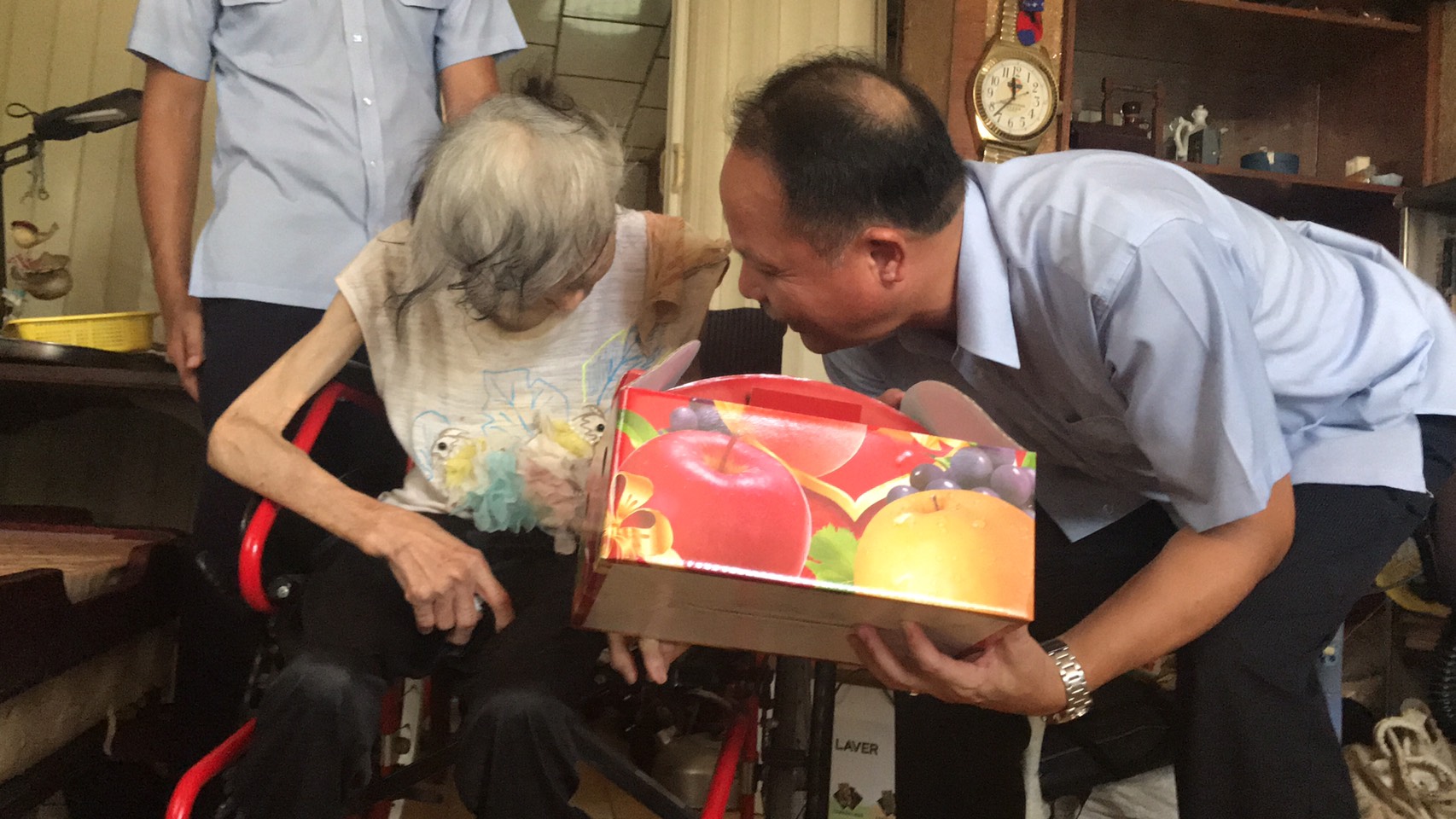 活動由中部分署邀集華山基金會發起,分署長扶大桂親自率警衛第四中隊同仁關懷台中市清水區獨居老人,並致贈水果禮盒。本分署同仁抵達住處給予熱切關懷時,老人家們眼神中露出久違的光芒,現場同仁更是當成自己長輩般親切的與其話家常,讓老人們感受親情般的溫暖,溫馨情意洋溢在滿是皺紋的臉上,老阿嬤也開心的說「讚!」。