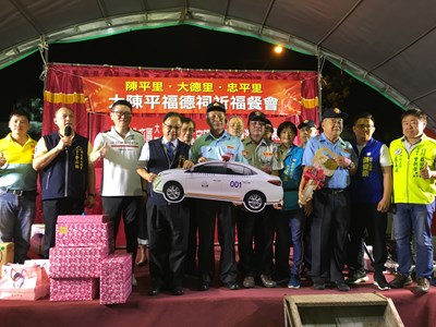 昨日交車儀式包括市議員賴順仁、沈佑蓮、曾朝榮、黃健豪、大德里長李必勝、陳平里長林家峯、忠平里長許秀蓉及守望相助隊隊員等人到場觀禮;立法委員沈智慧、市議員陳成添、謝明源服務團隊也到場見證。