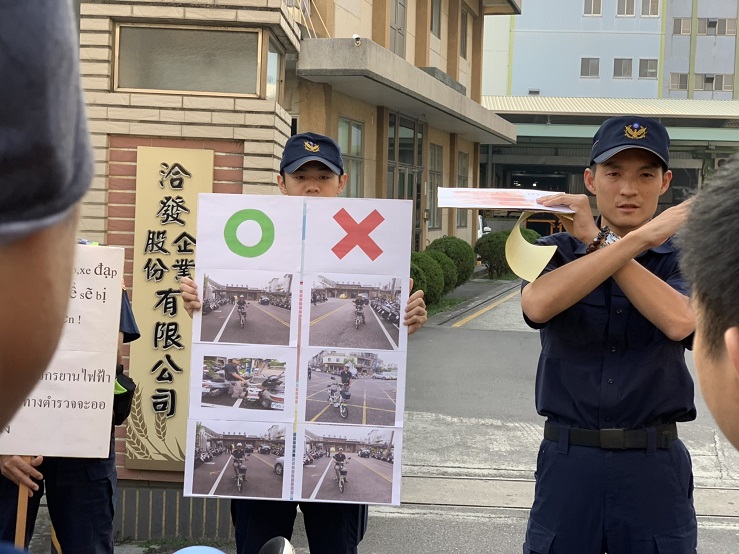 清水警分局交通組前往對轄內工廠針對外藉移工加強宣導行車安全,由於移工來自不同國家,警方不諳各國語言,突發奇想,特別拍攝正確及違規交通相片,藉由圖像來加以宣導,此外,警方也善加利國際語言,於宣導現場與移工比手劃腳進行溝通,當警方表示指向違規相片,便舉起印有新臺幣的相片,清礎告知移工該項違規行為會被受罰,現場移工看到皆露出驚訝表情,形成有趣畫面。另外,也向移工特別宣導勿違規停車,警方將加強取締。