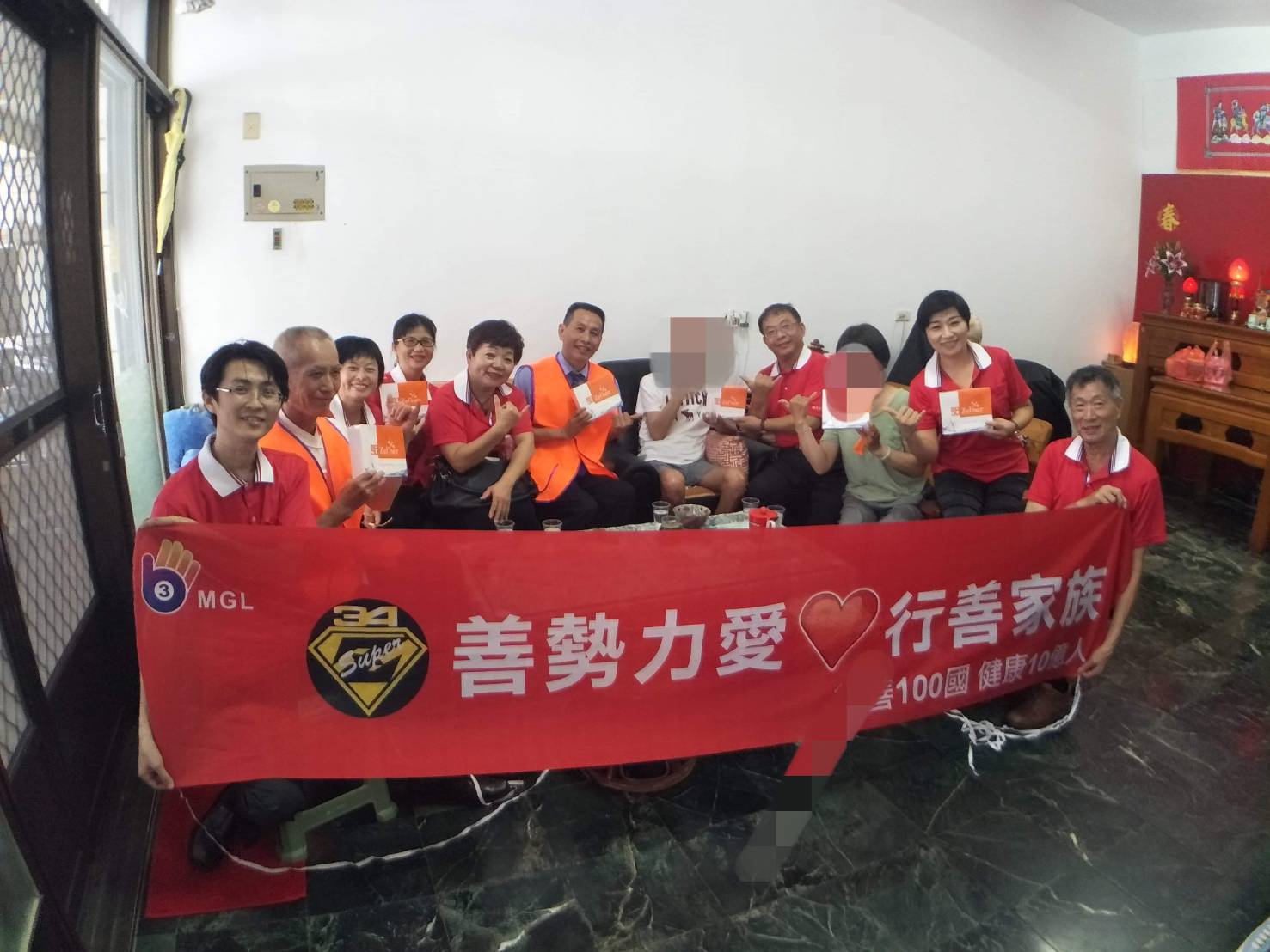 MGL346善勢力愛行善家族;柳大謙、林炳宏、李雅珍、林美好、白玉玨、鄭兆閎、許寶方、曾慧津、鍾嘉榛、陳海忠、鄭錦桂、薛壹偵、張登舜、賴崑山、張甄富、陳竩霏、黃耀德、余沛臻、黃秀竹、蔣志烝、陳仕幸、張艶秋、吳紀蓁、吳卉羚、吳秀怡、陳天盛、王貞懿、蕭羽辰、胡松兔、歐明坤、趙佐君、王沂瀅、林千入、林美妃、楊武雄、陳綉月、呂季宸、黃珍珍、陳張秀甘等,共捐助數十盒健康食品,期望除了藥物,也能藉助「食」的力量,讓病患有體力與病魔對抗。