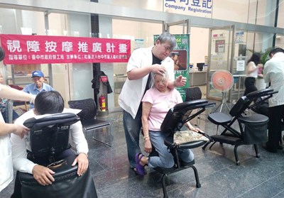 勞工局指出,市府領先全國首創「視障按摩據點評鑑機制」,通過評鑑的優良視障按摩據點共計67家,均公布在「台中市視障按摩服務網」(https://msg.taichung.gov.tw/),民眾可就近選擇優良的視障按摩據點,既紓壓又能集點抽大獎。