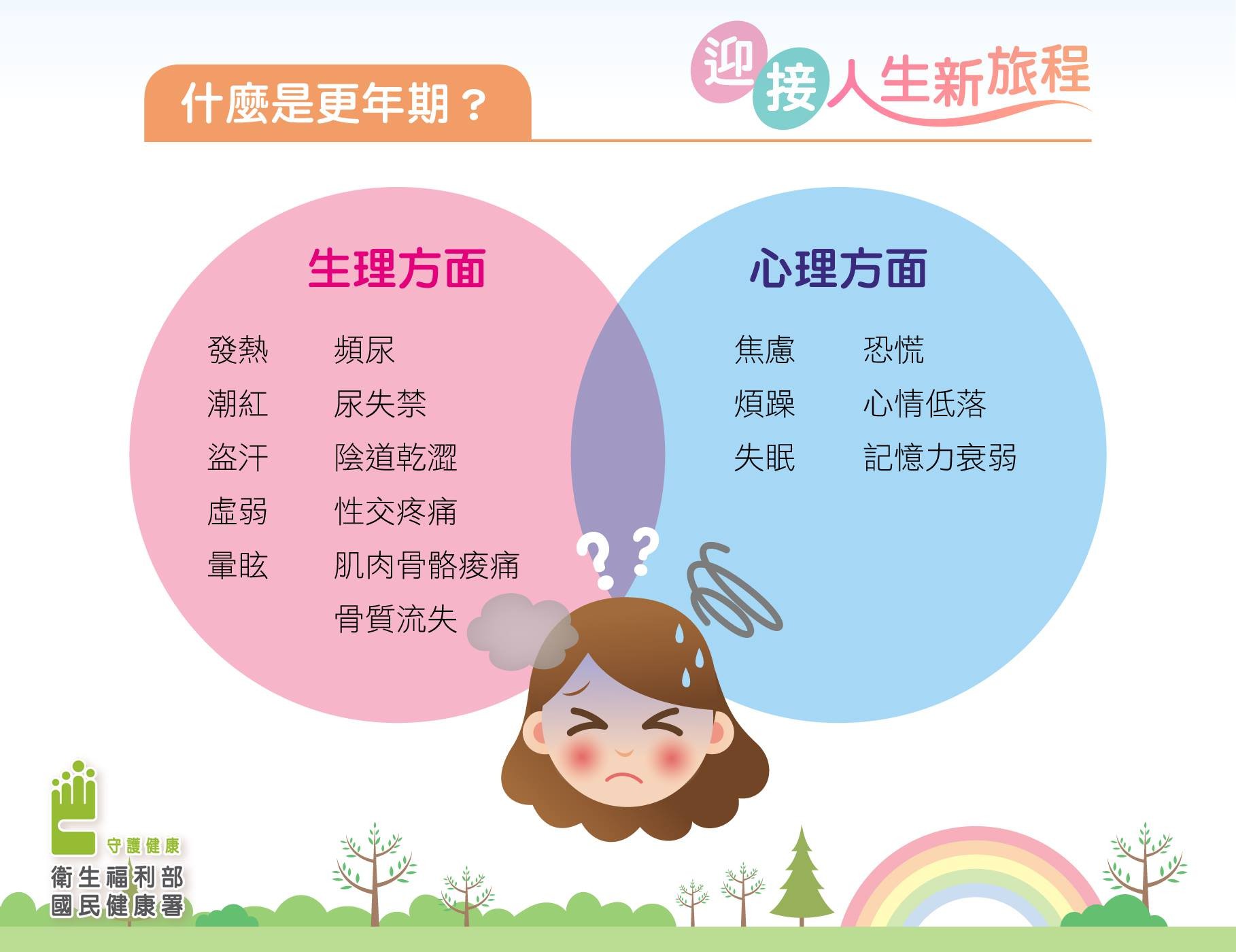 針對女性容易罹患骨質疏鬆,衛生局說明,女性原來的骨質就比男性差,且更年期是生命中自然且必經的歷程,女性停經以後骨質會快速流失,每年可流失2~3%,其中每3位就有1位可能因骨質疏鬆症而骨折;且這時期因體內荷爾蒙分泌逐漸減少,部分女性會產生生理及情緒變化和身心不適的情形。