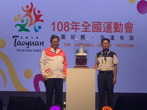 108年全國運動會10/19-10/24於桃園市展開,24日賽程全部結束,下午進行閉幕典禮及頒獎,本縣此次表現亮眼,創造了南投參加全國運動會史上最佳成績,全國獎牌排名第七名,六都外第一名,獲得大會監察院長獎殊榮,顯現南投縣體育政策推動方向正確,落實各項體育工作成功。