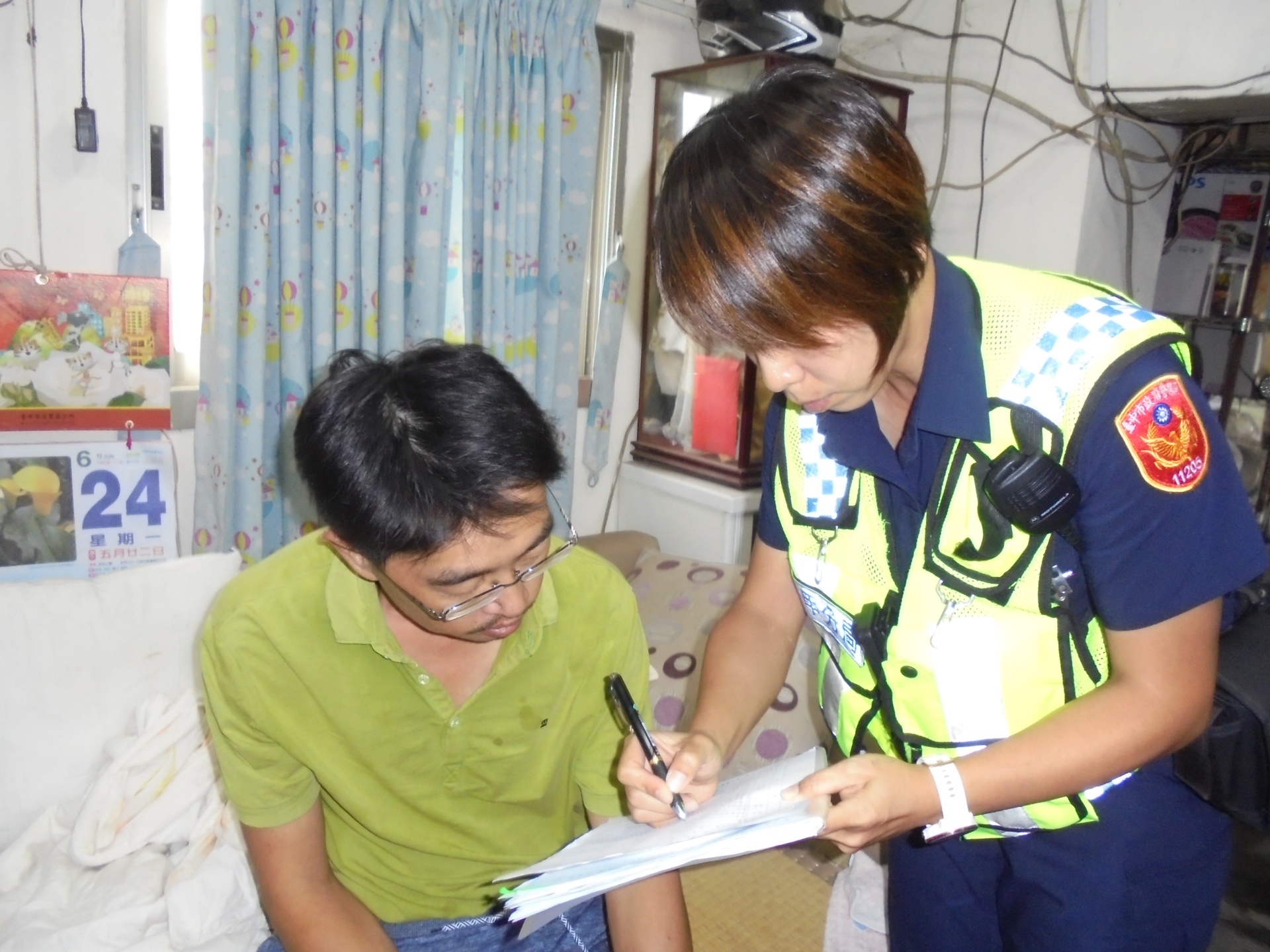 張警員負責后里分駐所轄內的「中和里」,利用勤區查察關心社區居民、實施犯罪預防宣導,日前張姓員警於輪休期間,在公務群組裡面發現執勤同仁受理轄內案件,發現報案地點是自己的勤區,故立即致電接案的同仁,同仁告知有一名中年男子坐在輪椅上且不發一語,由於張警員於查訪時,戶內人口並無異狀,因此直覺不對勁,於上班後立即主動前往關心,發現原為工程師的楊姓里民(66年次)原因不明攤倒在床上無法言語,故說服其就醫,經診治後才發現係腦瘤所致,導致全身無力、無法工作,家中還有一名年邁母親,家裡經濟頓時陷入困境,便通報里長一同前往關切,並協助其申請急難救助,用心和努力深獲鄉親肯定。