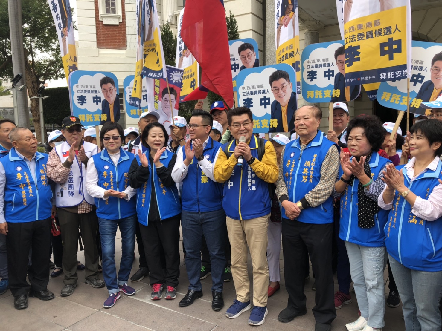 臺中市第六選區(中西東南)立法委員參選人李中,今日由國民黨臺中市黨部主委顏文正以及洪嘉鴻、林永安、顏英男、賴頤年、林黃玉美、張雪惠、林霈涵、郭孟姬等地方重要人士陪同,前往臺中州廳登記參選,市議會同事張彥彤與黃健豪議員也特別到場助陣,預祝李中旗開得勝!