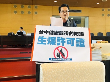 陳文政要求市府,燒不燒煤並不是中央說的算,台中市政府握有核發「生煤操作許可證」的權利,請市府相關單位要以此為籌碼,強硬要求中火除役等量的老舊燃煤機組,捍衛台中人的健康與尊嚴。