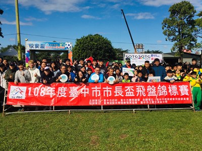 108年台中市長盃飛盤錦標賽日前在朝馬足球場登場,連四天賽事,吸引400多名好手同場較勁,今年市長盃飛盤錦標賽共分為擲遠賽、回收計時賽、雙人傳接計時賽、高爾夫敲桿賽以及飛盤爭奪賽等5大項目,共有國小組、國中組、高中組、教師組以及社會組等競賽組別共44組 ,鼓勵民眾培養運動習慣,共同響應市府「酷城市、酷運動」的理念。