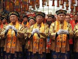南投水里己亥年祈安清醮大典,經過為5天全民齋戒祈福求平安,今日圓滿開香普度大拜拜。縣長林明溱、清醮祭典總理蕭志全及總壇執事、東西南北四柱柱首,在下午吉時虔誠開香祭拜,議長何勝豐也專程參加。這項十二年一度大方宗教盛會從中午起吸引大批各地民眾湧入,水里鄉連外的台十六、台廿一線公路,車流大排長龍、途為之塞十分熱鬧。