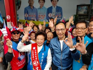 台中市政府昨天廢止中火兩部機組許可證,韓國瑜競選總部主委朱立倫與台中市九位國民黨籍立委及黨團議員今日合體,高喊「抗中火保台中!」「總統換人、空氣才會好!」朱立倫呼籲民進黨民代也站出來一起抗空污。