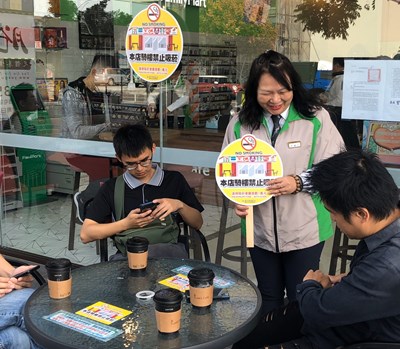 台中市今年11月公告全市連鎖超商(統一超商、全家便利商店、OK、萊爾富、美廉社)及咖啡店(星巴克、路易莎、85度C)等近1,400家店騎樓及庇廊全面禁菸,明年1月1日正式施行。